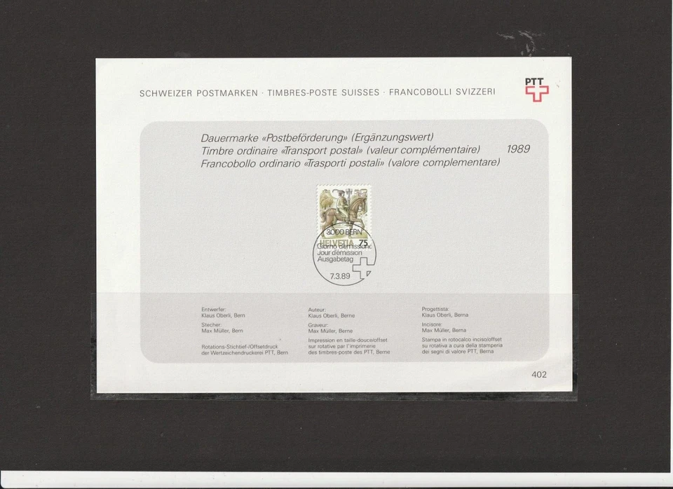 Schweiz - Sammelblatt 402 " Freimarke - Postbeförderung "