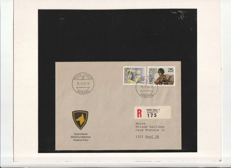 Schweiz-Feldpost-Einschreiben " 7000 Chur - 1211 Genf 28 " 15.02.1991