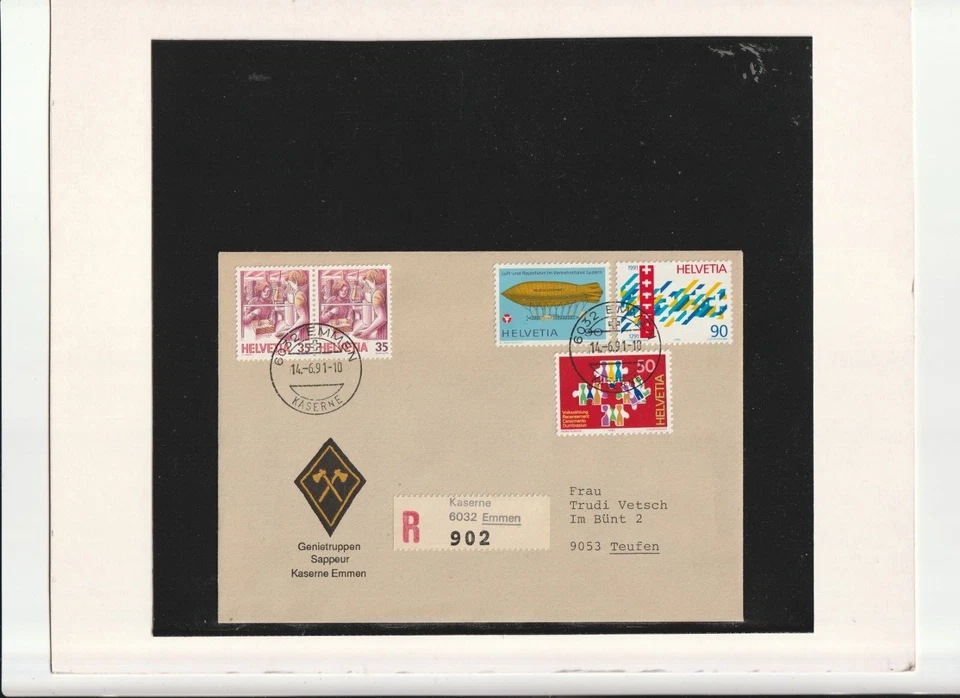 Schweiz-Feldpost-Einschreiben " 6032 Emmen - 9053 Teufen " 14.06.1991