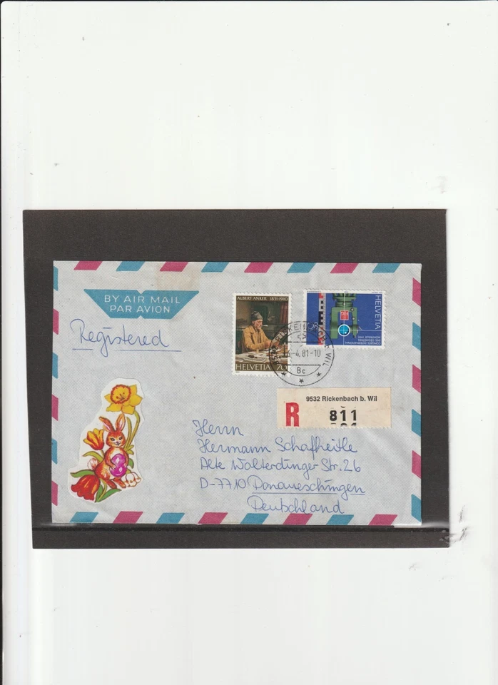 Schweiz - Aerogramm - Einschreiben 16.04.81 " 9532 Rickenbach- Donaueschingen "