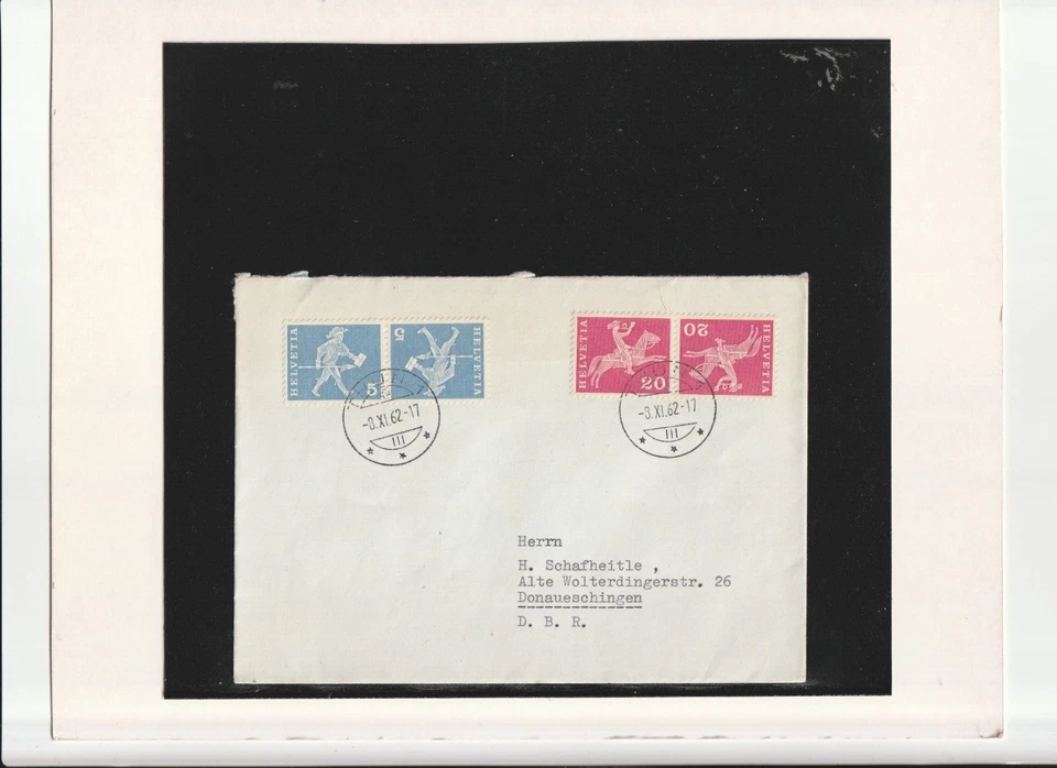 Schweiz-Beleg mit " K 45 + K 47 " frankiert, am 08.11.1962 echt gelaufen