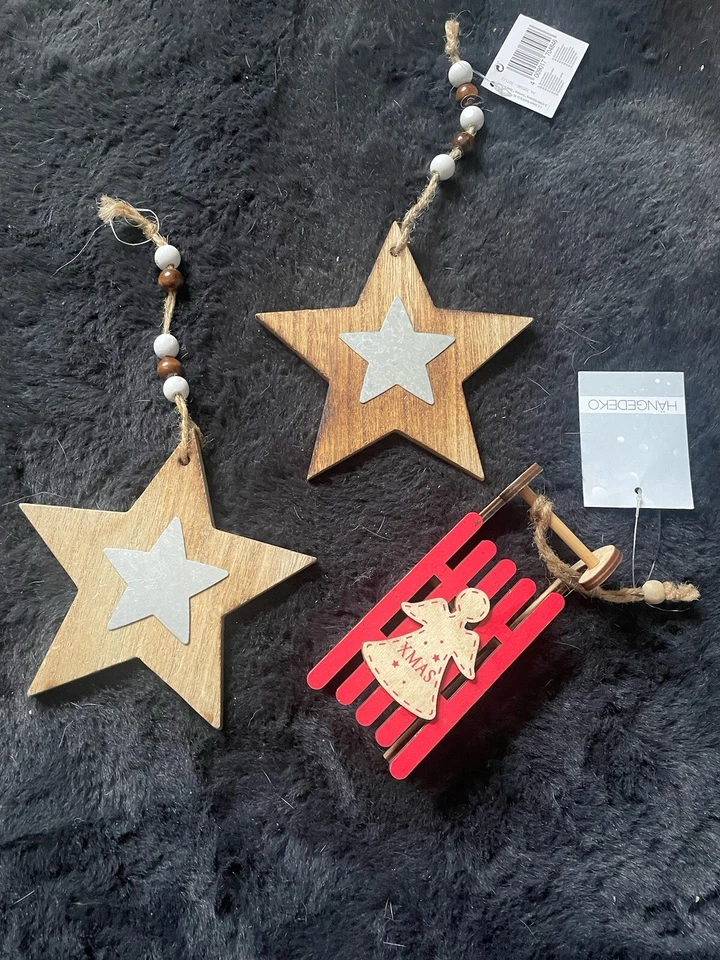 +++ 3 +++ DEKO ANHÄNGER +++ STERN +++ SCHLITTEN +++ Holz DEKO +++ Unbenutzt