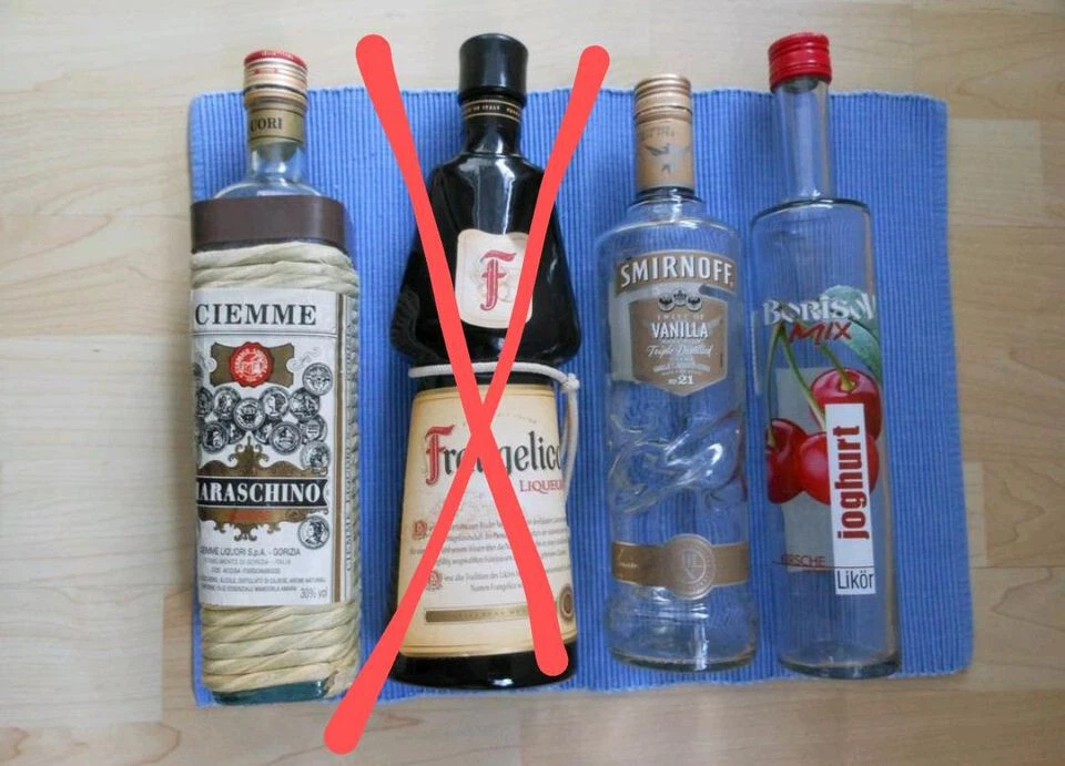 Flaschen LEER Maraschino und Joghurt Likör, Wodka Smirnoff, Schnaps