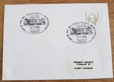 100 Jahre Trossinger Eisenbahn Jubiläum Trossingen 1998 Beleg Sonderstempel