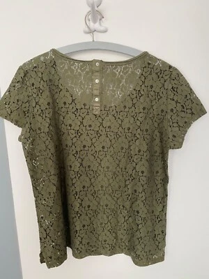 T-Shirt oliv Kurzarm Damenshirt Gr.40 Muster Lochmuster grün