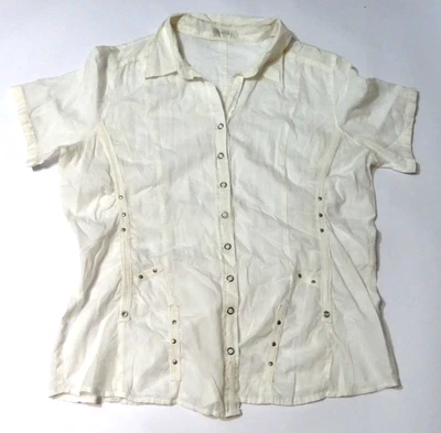 Bonita Bluse Gr 40 Weiß Damen Knopf Hemd Kurzarm gestreift 100% Baumwolle