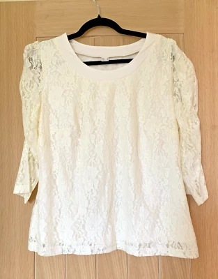 Vintage creme Polyester Spitze gefüttert 3/4 Ärmel deutsches Top alte Größe 16
