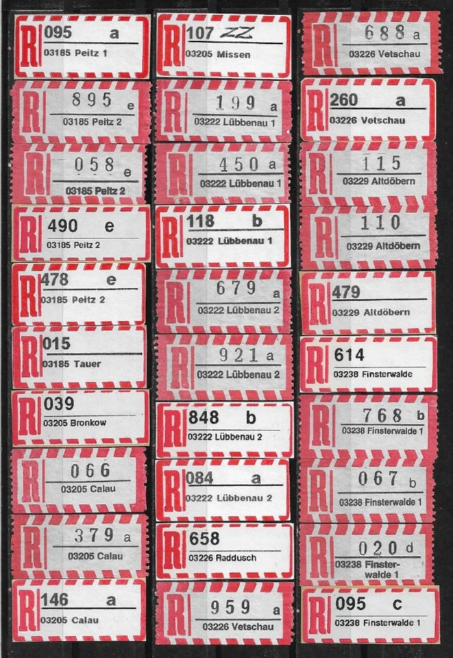 R-Zettel/BRD/5-stellige PLZ/03185 Peitz 1 - 03238 Finsterwalde 1 (30 versch.)