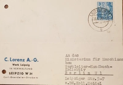 DDR-LEIPZIG.: Postkarte- postgelaufen, gestempelt 26.6.1954