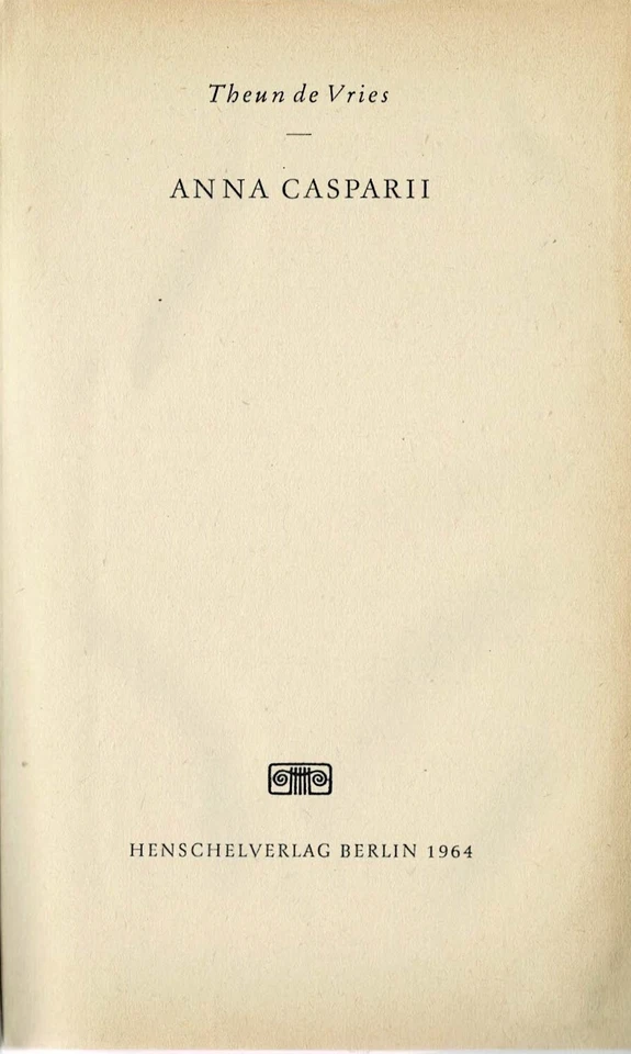 Roman "Anna Casparii – Fuge der Zeit" von Vries de Theun, Henschel, Berlin, 1964