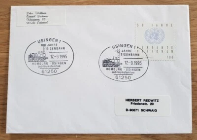 100 Jahre Eisenbahn Homburg - Usingen Jubiläumsfahrten Beleg 1995 Sonderstempel