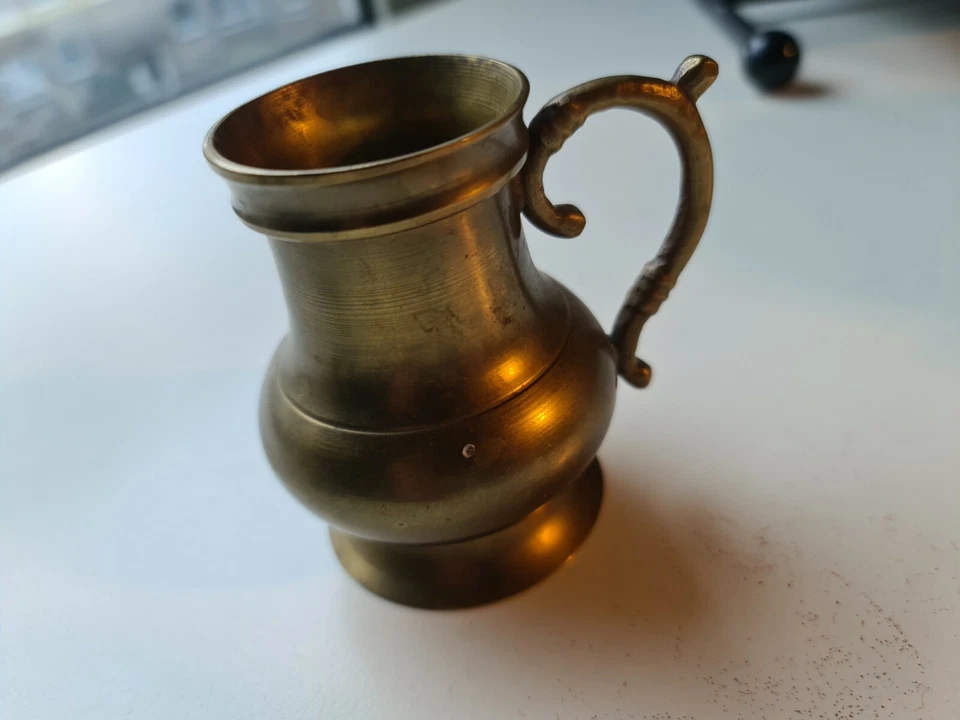 Vintage: alte dekorative Messing Karaffe, Kanne, Ausgießer, mit Griff, Höhe 8cm