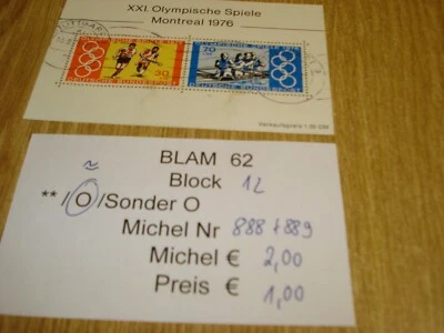 #BLAM62 Block 12 Michel 888+ 889 Olympische Sommerspiele Stuttgart Wellenstempel