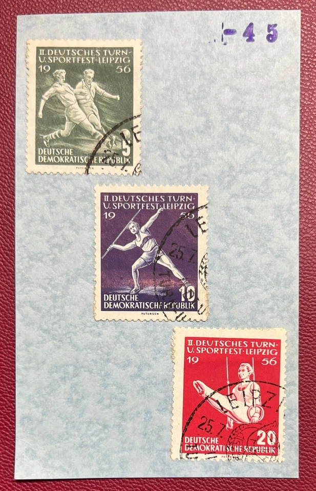 DDR 1956 3 Briefmarken auf Karte wie abgebildet