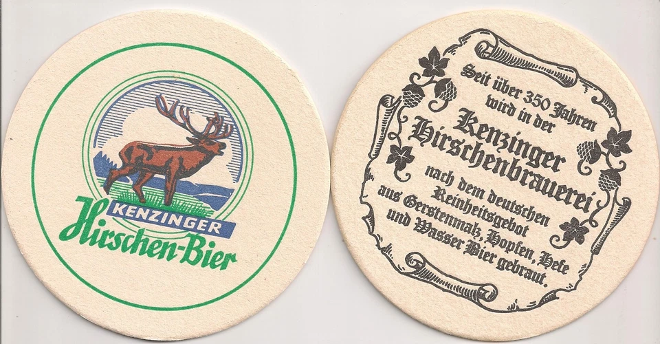 Kenzinger Hirschen-Bier, alter Bierdeckel "Seit über 350 Jahren..."