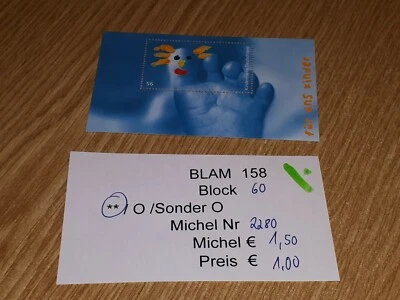 #BLAM 158 Block 60 postfrisch Michel 2280 Frankatur Für uns Kinder 2002