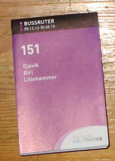 Fahrplan Norwegen Bus Gjövik - Biri - Lillehammer