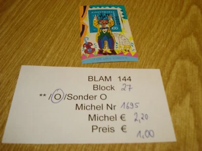 #BLAM144 Block 27 Michel 1695 Für uns Kinder Kindermarke Clown Porta Westfalia