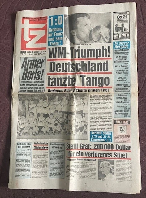 Alte Tageszeitung: TZ München vom 09.07.90 Deutschland ist Fußballweltmeister