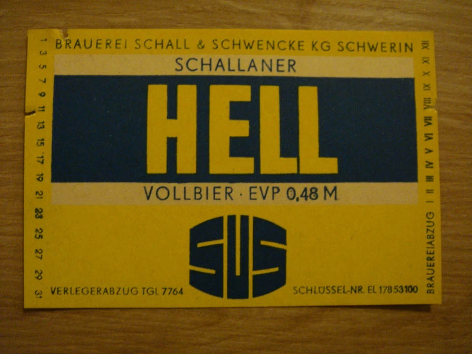 *** seltenes DDR Bieretikett Brauerei Schall & Schwencke SCHWERIN ***