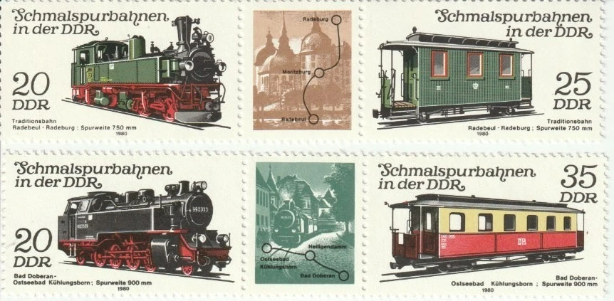 DDR-Briefmarken, kpl.Satz: „Schmalspurbahnen (I)“, 1980, Mi.2562-65.#74_1