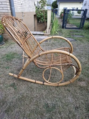 Bambus (Rattan ?)-Schaukelstuhl Schwingsessel KELLERFUND