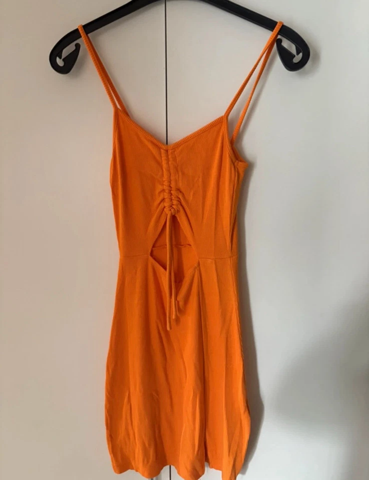 Damen Kleid XS Orange Sexy Bauchfrei Kurz