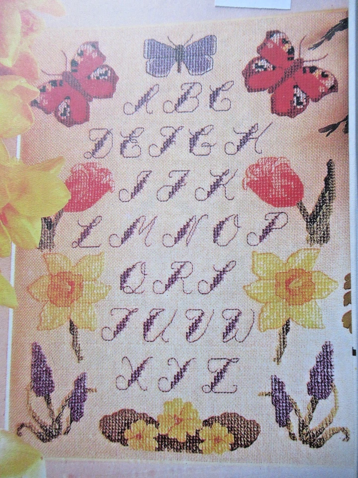 Stickvorlagen "ABC Mustertuch Blumen und Schmetterlinge" Kreuzstich-Motive