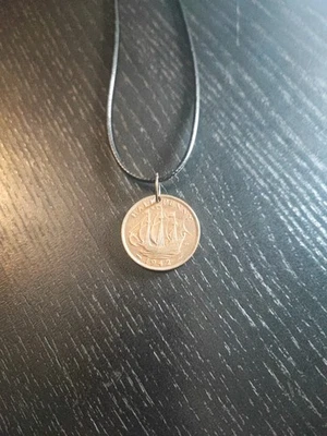 Halskette Münze Großbritannien Half Penny 1942 45 - 50cm Leder segelschiff