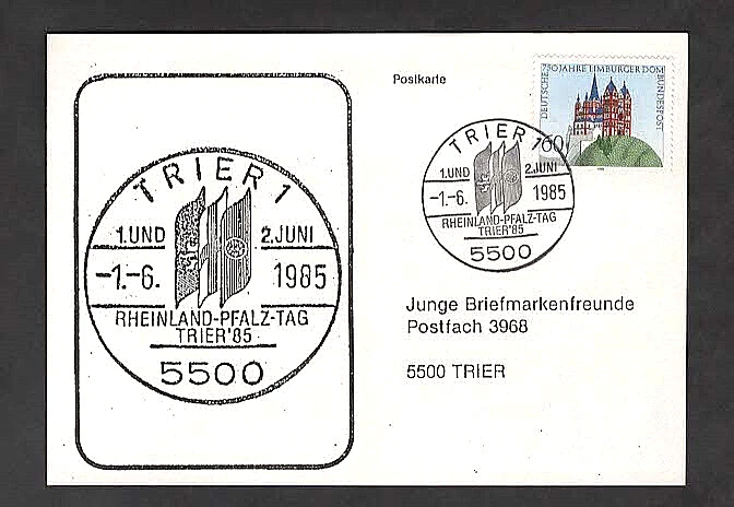 Karte / Postkarte mit Sonderstempel "Limburger Dom" ; Mi.-Nr: 1250 ; SSt: 1.6.85