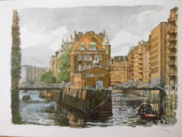 Künstler Landschafts-Karte , Speicherstadt i. Hamburg ,neu