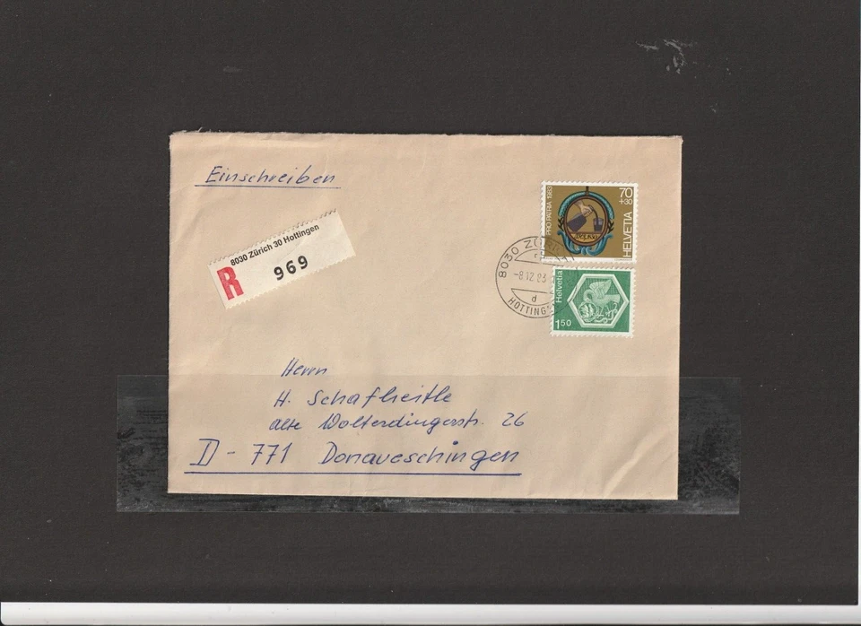 Schweiz - Einschreiben 08.12.1983 " 8030 Zürich 30 - Donaueschingen "