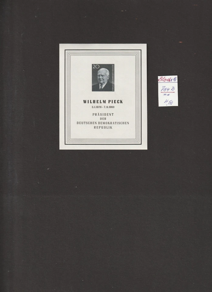 DDR - Block 16 Mi. Nr. 784 B " Tod von Wilhelm Pieck " Postfrisch, siehe Scan