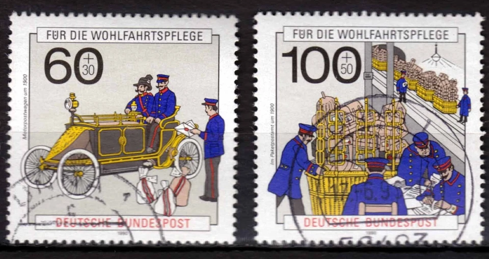 BRD 1990 MiNr 1474+1476 Wohlfahrt Geschichte Post+Telekommunikation gestempelt