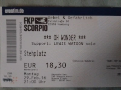 OH WONDER,29.2.2016, Hamburg,Konzertkarte gebraucht
