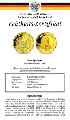 Ludwig Erhard - Die Kanzler und Präsidenten der BRD in Reines Gold - Zertifikat