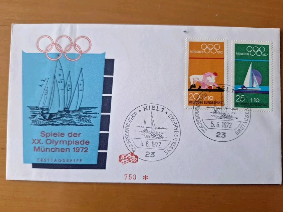 BRD Ersttagsbrief Olympia 1972 München mit Sonderstempel Kiel 5.6.1972