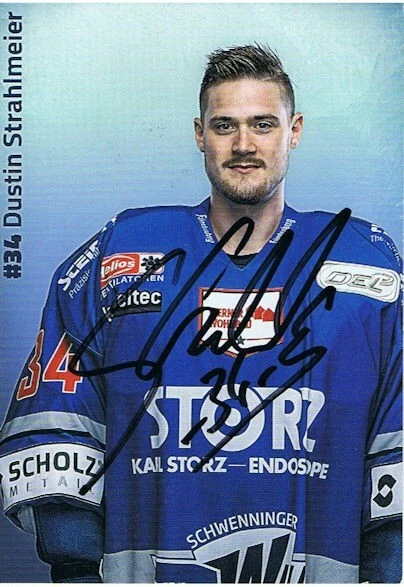 Dustin Strahlmeier (Eishockey, Vizeweltmeister 2023), sign. Wild Wings AK