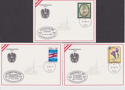 österr. Ausstellungskarten 1986 komplett Mi. Nr. 25 - 31 aus ABO, siehe Scan XX