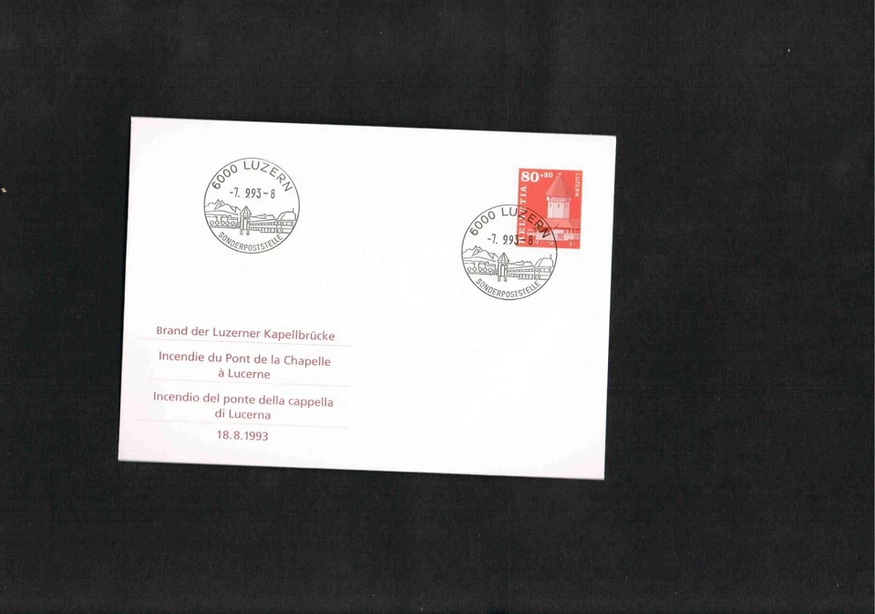 Schweiz - Schmuck - FDC - Mi. Nr. 1511 " Wiederaufbau Luzerner Kapellbrücke "TOP