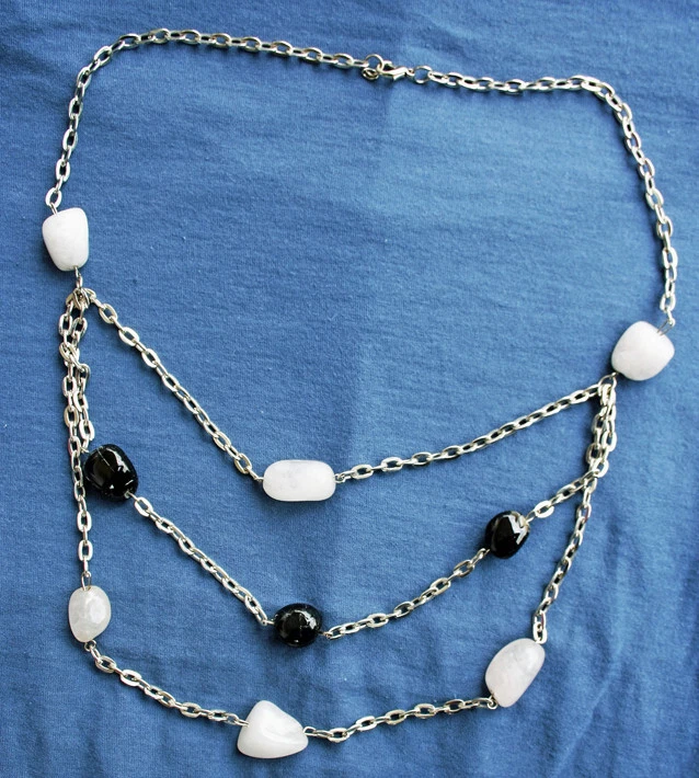 Silberfarbene Kette mit hellen und dunklen Steinen