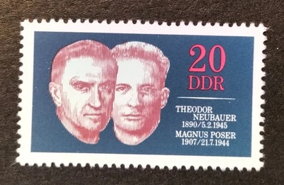 Briefmarke Theodor Neubauer u. Magnus Poser 20 Pf. 1970 Mi. DDR 1603 postfrisch