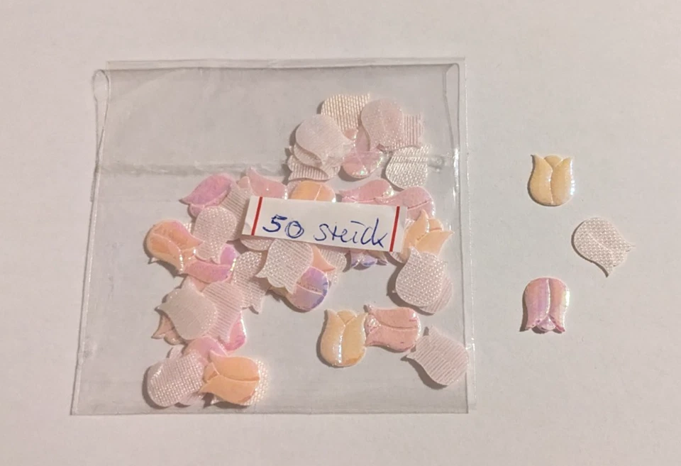 50 Tulpen aus Stoff *** weiß rosa gelb lila irisierend basteln Karten Deko