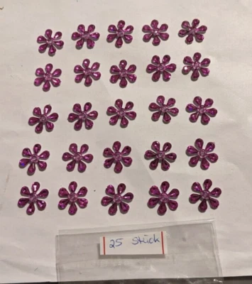 25 Glitzersteine " Blume " 19mm ** groß pink Blüte Blumen basteln Karten Kerzen