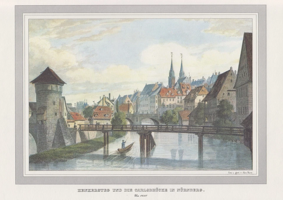 Carlsbrücke in Nürnberg - historische Bildtafel um 1850 - Biedermeierzeit (13)