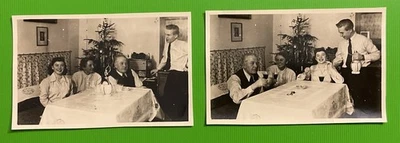 623/Konvolut 2 Fotos S-W Weinachtsfeiern 50er Alte Mode Familienfeirn 8,8x5,6