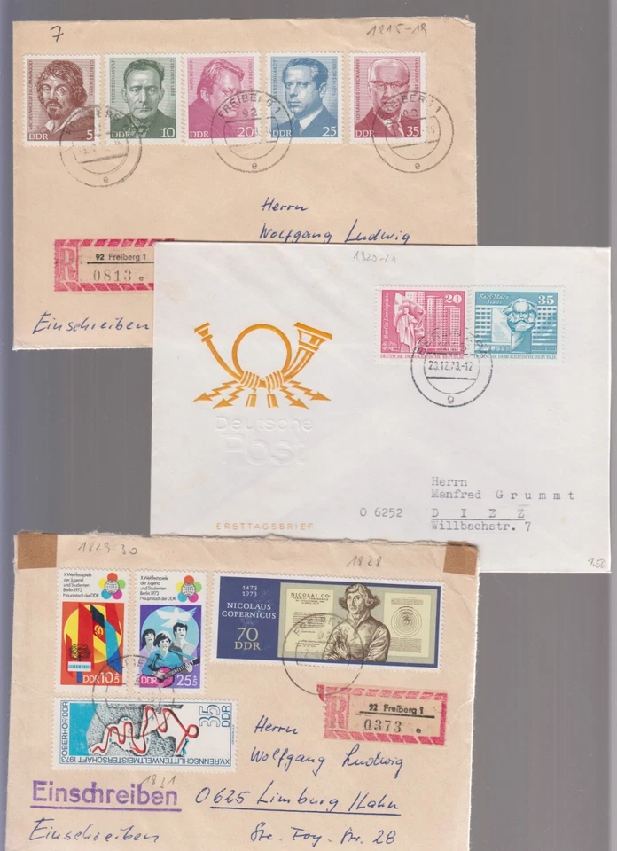 9118 - DDR - Mi-Nr. 1509-1510 + 1524-1527 auf 3 Briefen