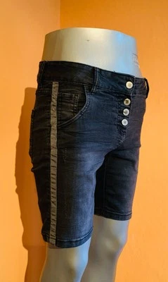 H&M kurze modische Damen Jeans Hose Bermuda Short Gr. 36 / S Schwarz mit Glitzer