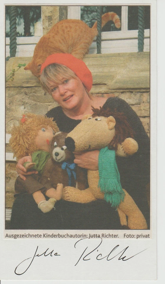 Jutta Richter, orig sign Karte mit Papierfoto