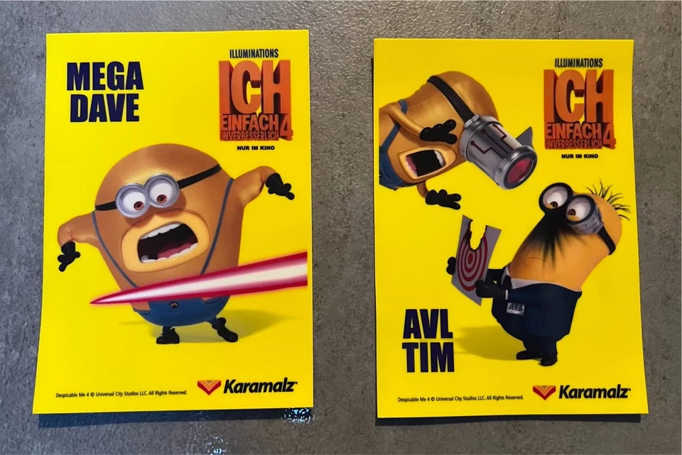 2x Minion Aufkleber Mega Dave & Avl Tim für Kinder Fensterkleber